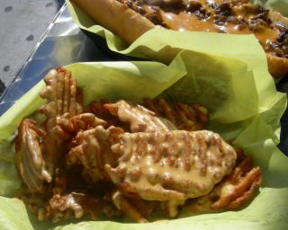 I taste-tested my friend's half made with the traditional addition of Whiz, and the other (mine) with the house-made Newcastle Brown Ale cheddar sauce. I gotta go with the cheddah as the champ choice, although the Whiz definitely had a strong congealing power, an important factor in keeping it all together. (You can also get white American or provolone cheese.)