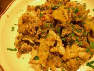 Once that order is in, if you're starvin' Marvin, you can start with marinated olives ($2), an order of Buffalo wings ($7 for six or $13 for 13), or if you've decided fear of carbs be damned, there are the sweet potato steak fries ($7) that a Sunset-residing friend of mine swears by. Then again, it's not a pizza party without an iceberg-lettuce salad ($4.75-$8), right? Or you can do a mixed-greens salad ($5-$8.25) or a wilted baby-spinach salad ($7). We went for the oven-roasted cauliflower ($5) with chili and small pieces of orange--it was a touch too salty, but the flavors were good.