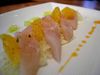 Course One: Trio of Fish: Ahi Tartare–scallions, avocado; Hamachi Crudo–pickled cucumber, curried mayonnaise, ponzu, herbs; Smoked Trout–truffled egg salad, crostini, herbs, with Pierre Peters Blanc de Blancs Millesime 1998 Mesnil-sur-Oger.