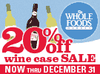 Whole Foods Market is having a 20% off sale on every bottle of wine in stock now. Buy 12 or more bottles of wine and save 20% off from December 26th-31st, 2009.