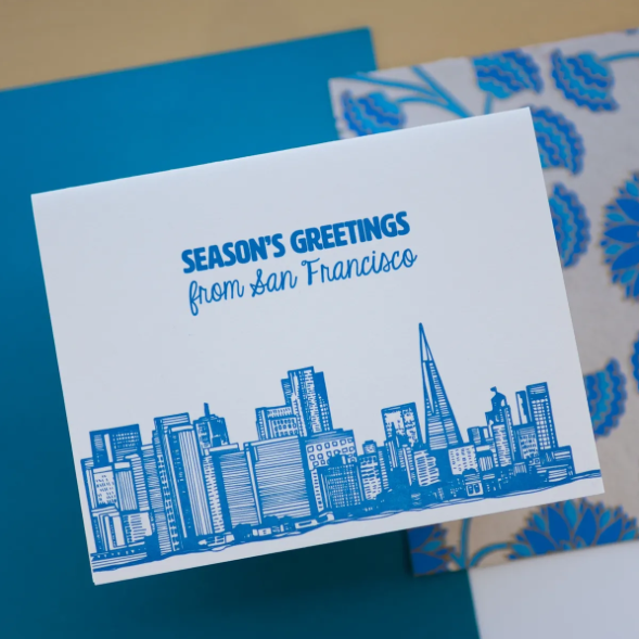 Seasons Greetings from SF Letterpress Card from Coffee n Cream Press. We’re including this adorable letterpress card of an SF skyline so you can send some love from SF to someone (we’re leaving it blank for you!). Each card is drawn, designed, and printed in-house on owner Leah Jachimowicz’s Vandercook Letterpress, folded and packaged one card at a time, right here in San Francisco.